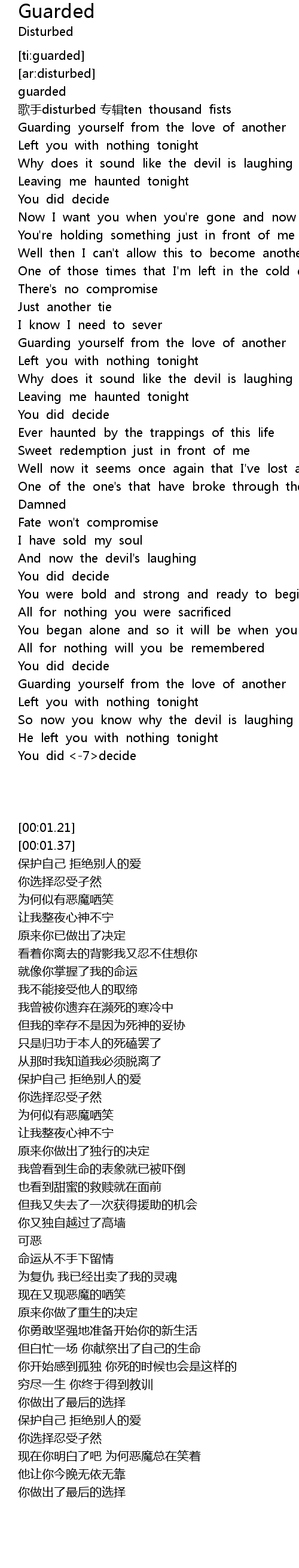 | [00:01.37] | ge shou disturbed zhuan ji ten thousand fists |