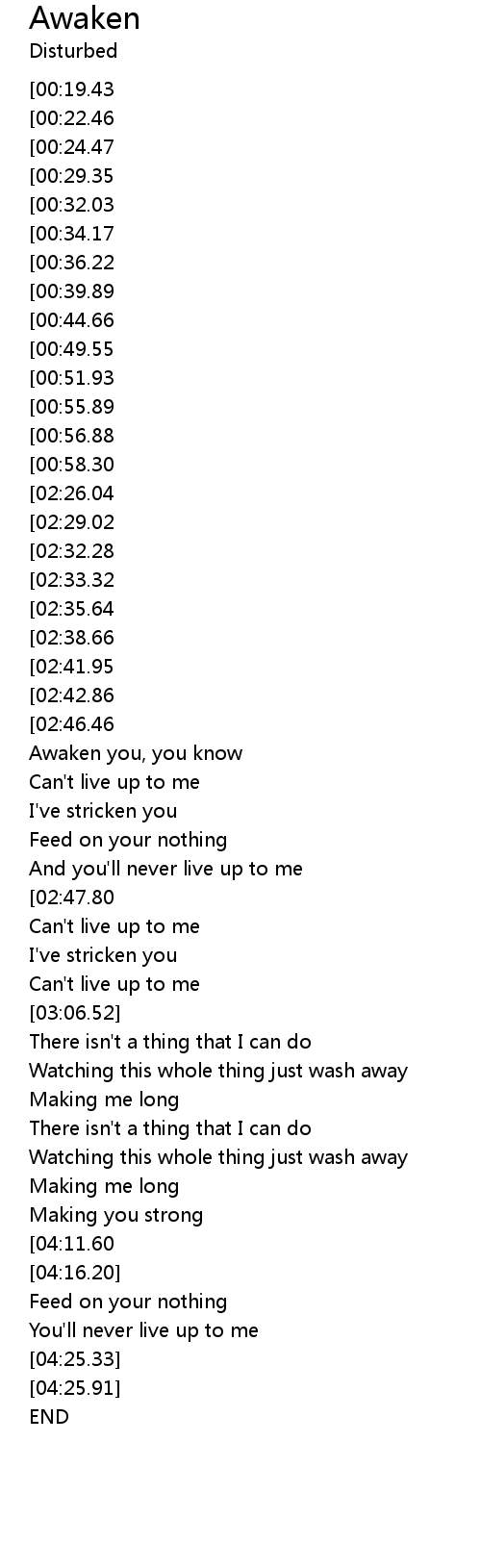 | [03:45.62][02:26.04][00:59.26] | Awaken you |