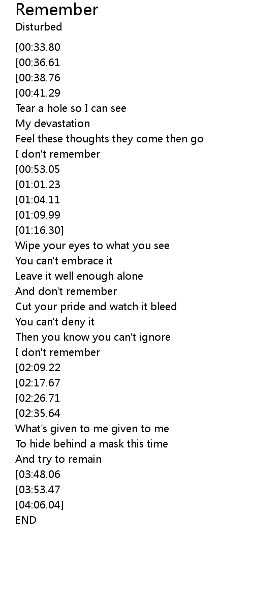 | [01:34.00] | And don't remember |
