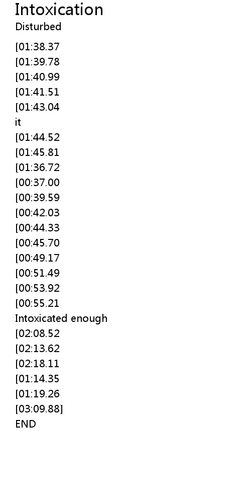 | [03:02.40][01:40.99][01:31.45][00:31.75][00:22.26] | You're mine |