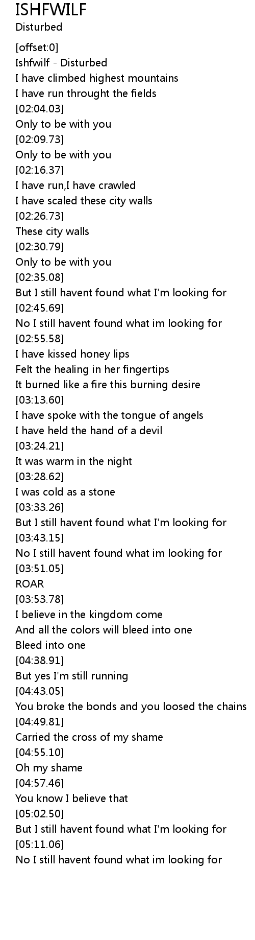 | [04:45.38] | You broke the bonds and you loosed the chains |