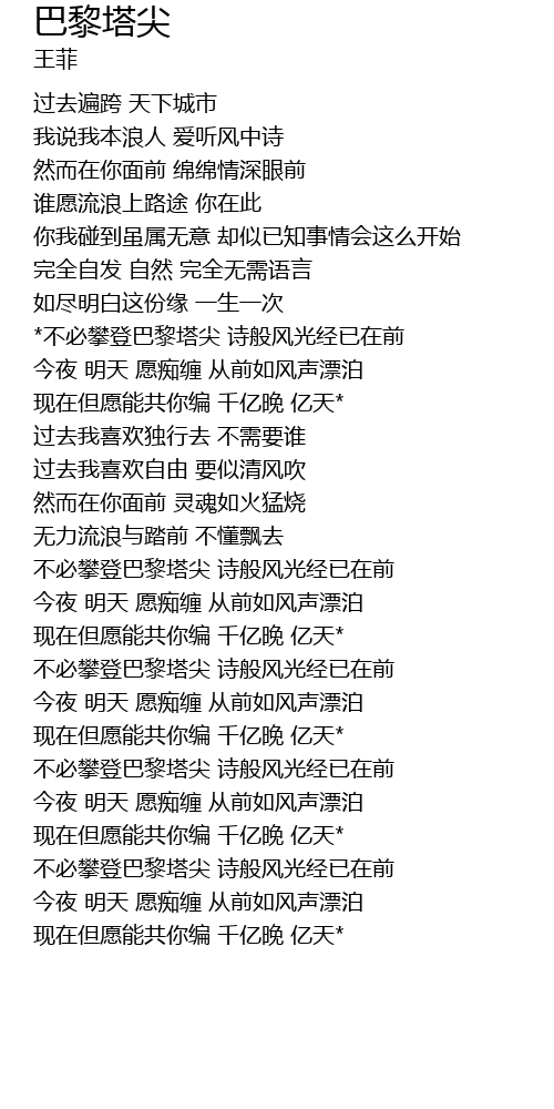 | [01:12.0] | *不必攀登巴黎塔尖 诗般风光经已在前 |