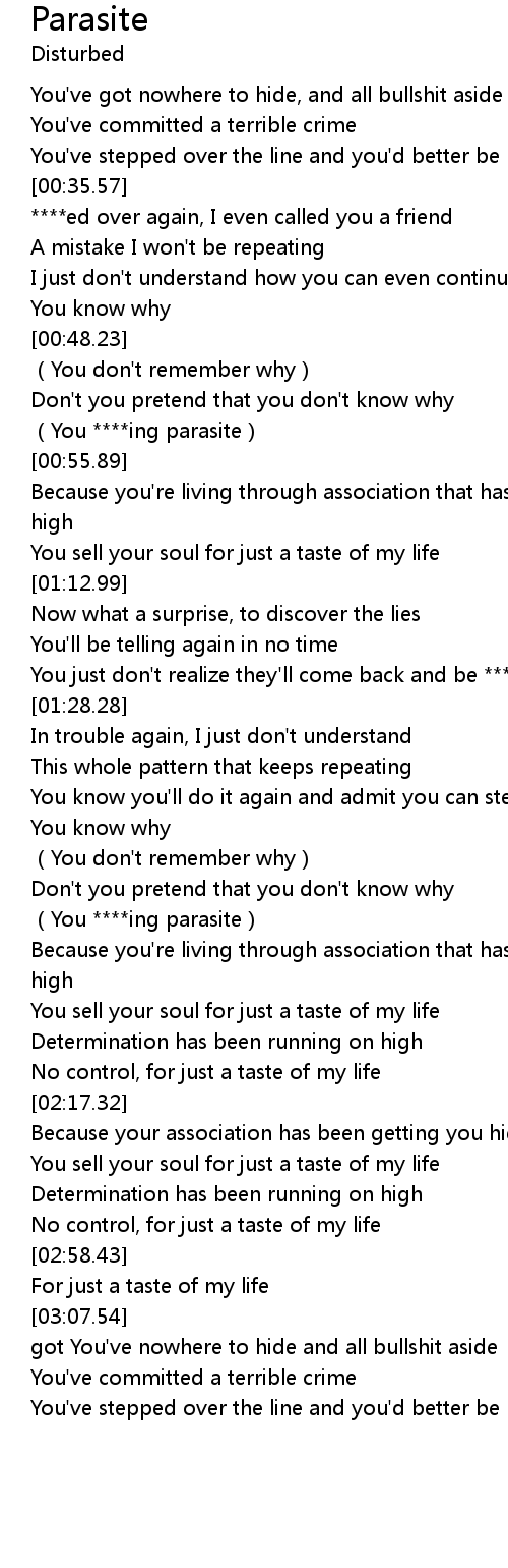 | [01:22.60] | You just don't realize they'll come back and be ****ing up your life |