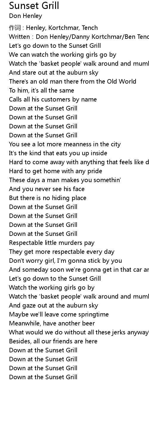 | Let' s go down to the Sunset Grill | |