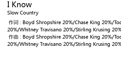 | [00:00.000] | 作曲 : Boyd Shropshire 20%/Chase King 20%/Todd Weissfeld 20%/Whitney Travisano 20%/Stirling Krusing 20% |