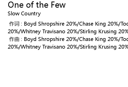 | [00:00.000] | 作曲 : Boyd Shropshire 20%/Chase King 20%/Todd Weissfeld 20%/Whitney Travisano 20%/Stirling Krusing 20% |