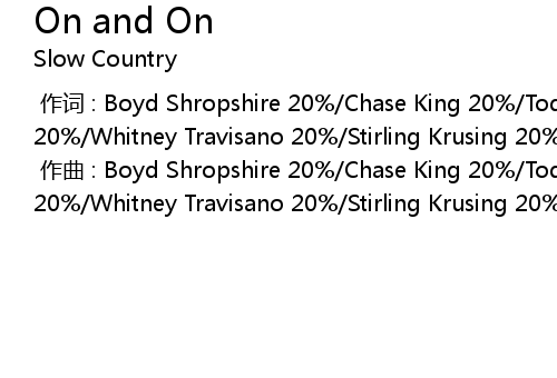 | [00:00.000] | 作曲 : Boyd Shropshire 20%/Chase King 20%/Todd Weissfeld 20%/Whitney Travisano 20%/Stirling Krusing 20% |
