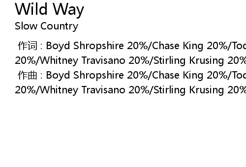 | [00:00.000] | 作曲 : Boyd Shropshire 20%/Chase King 20%/Todd Weissfeld 20%/Whitney Travisano 20%/Stirling Krusing 20% |