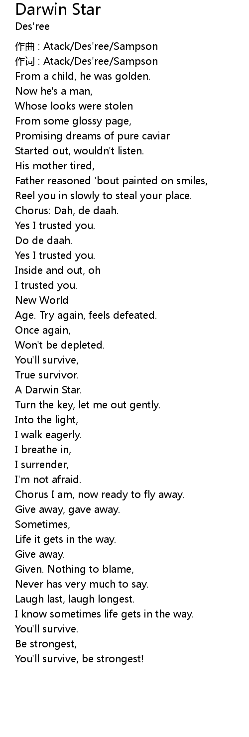 | Song | Darwin Star |