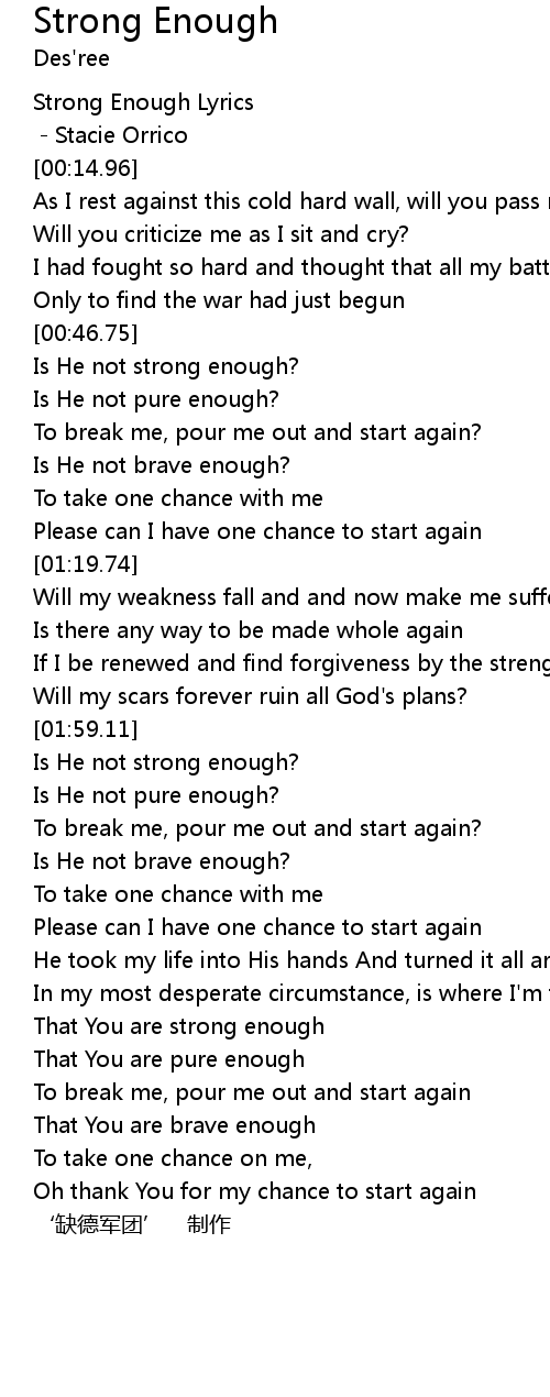| [01:43.39] | If I be renewed and find forgiveness by the strength I' ve never had |