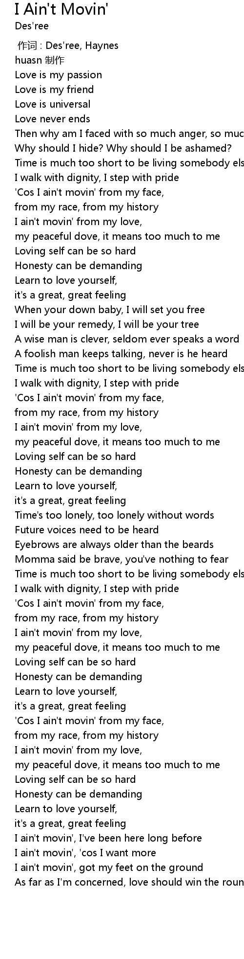 | [03:46.61] | I ain' t movin', ' cos I want more |