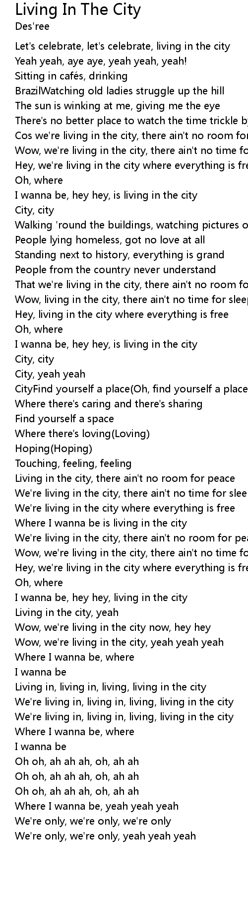 | Wow, we' re living in the city, yeah yeah yeah | |