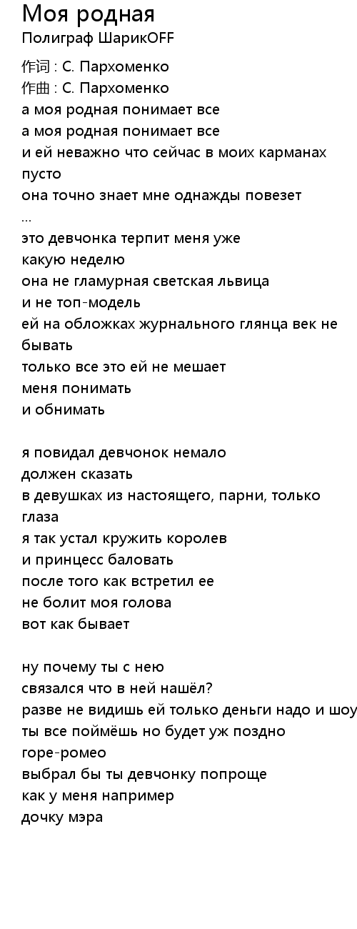 а моя родная понимает все |