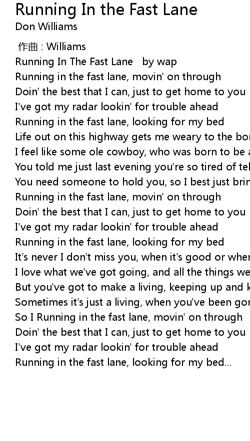 | [00:00.00] | Running In The Fast Lane by wap |