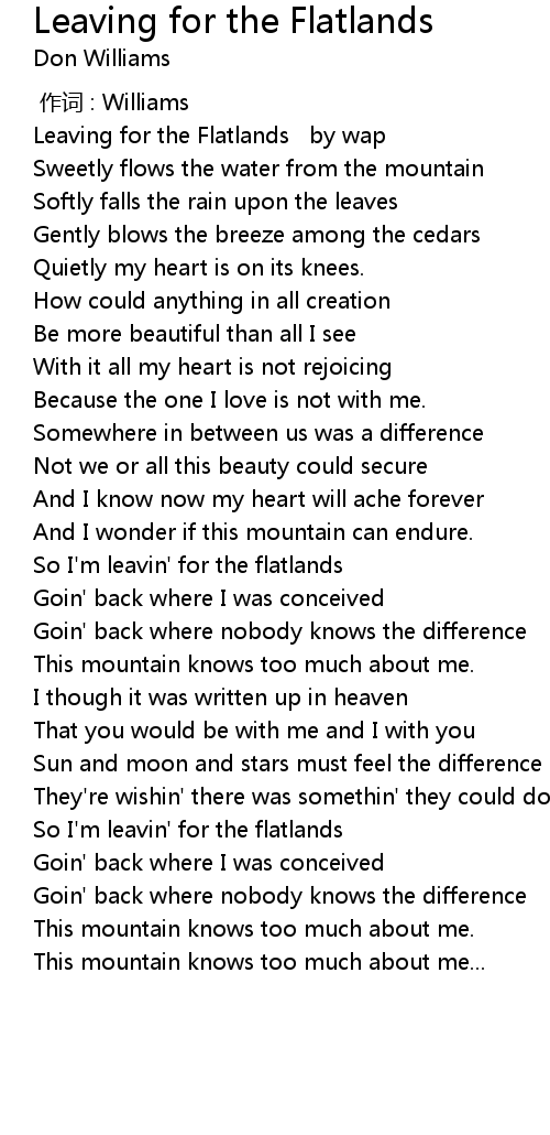 | [00:00.00] | Leaving for the Flatlands by wap |