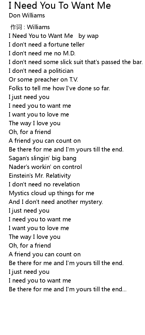 | [00:00.00] | I Need You to Want Me by wap |
