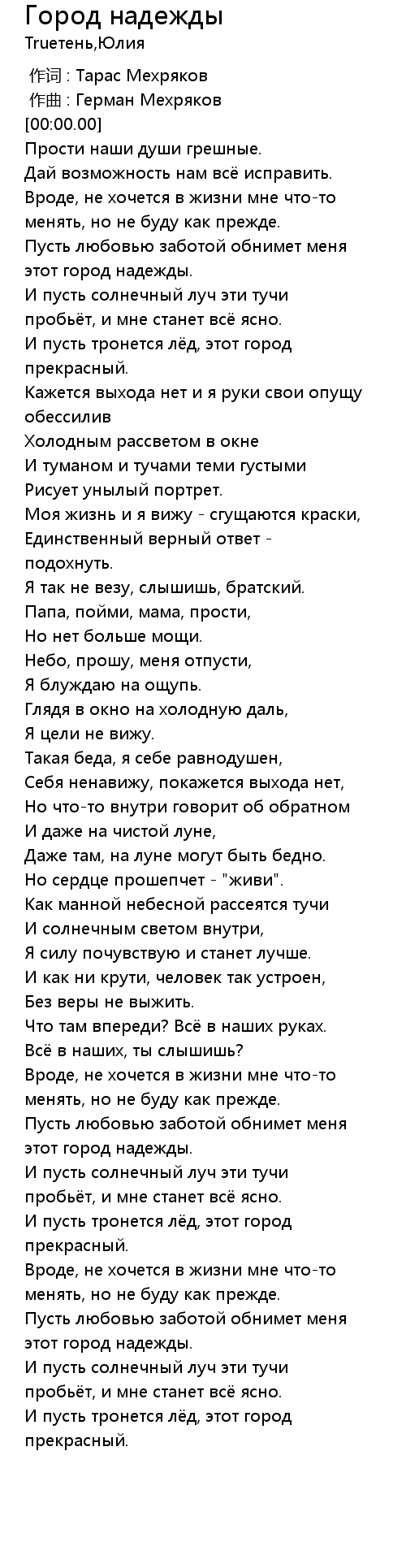 Пусть любовью заботой обнимет меня этот город надежды. |