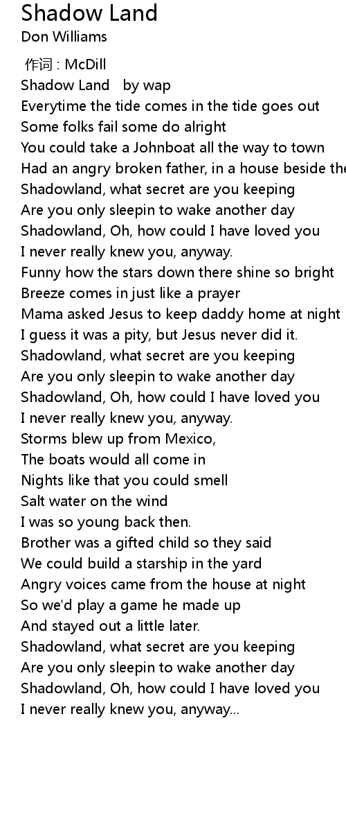| [00:48.32] | Shadowland, what secret are you keeping |
