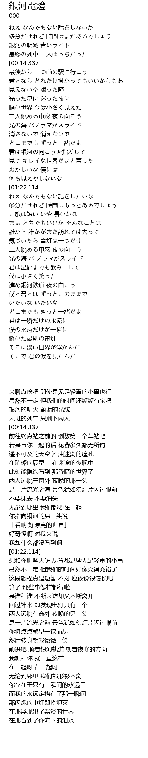 | [02:16.994] | 進め銀河鉄道 夜の向こう |