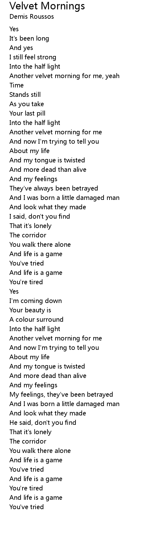 Velvet Mornings Lyrics