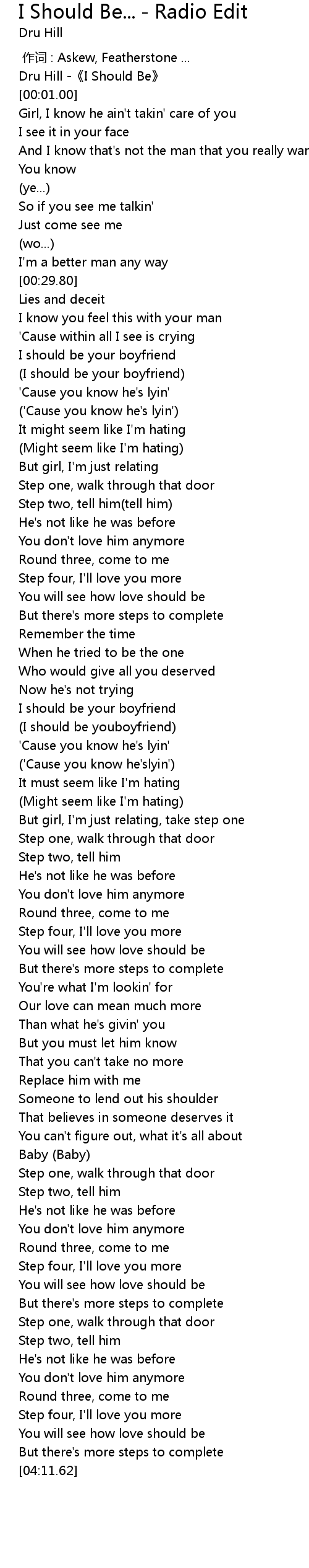 | [00:00.35] | Dru Hill -《I Should Be》 |