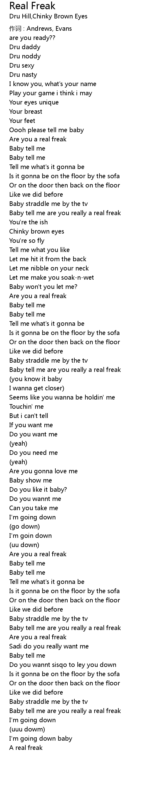| Baby tell me are you really a real freak | |