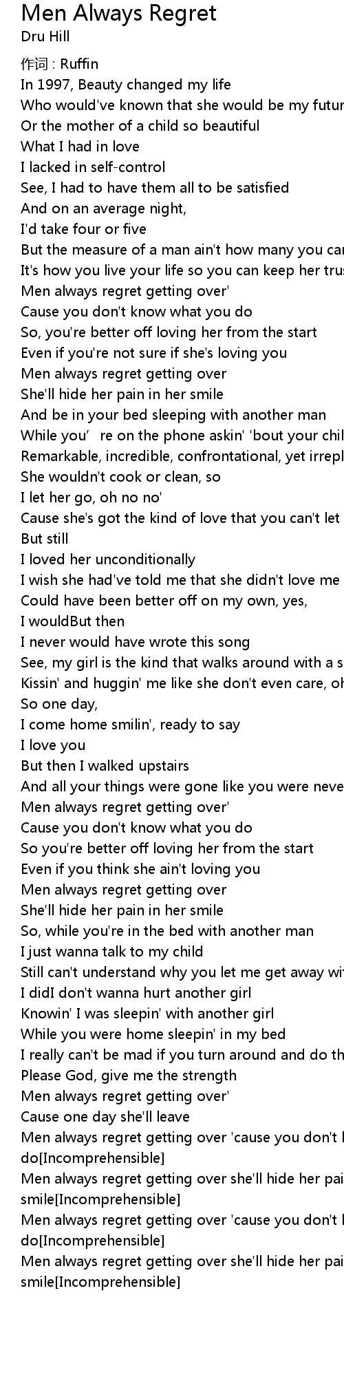 | Men always regret getting over ' cause you don' t know what you do Incomprehensible | |