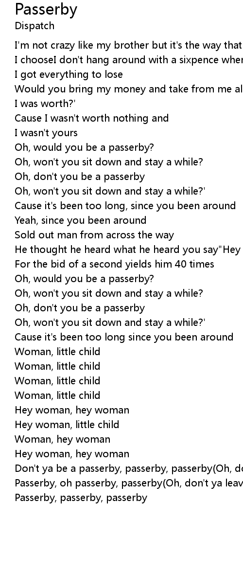 Passerby, oh passerby, passerby(Oh, don't ya leave me alone)