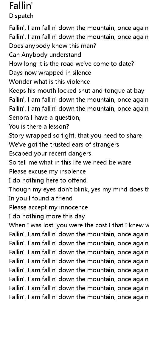 Fallin', I am fallin' down the mountain, once again