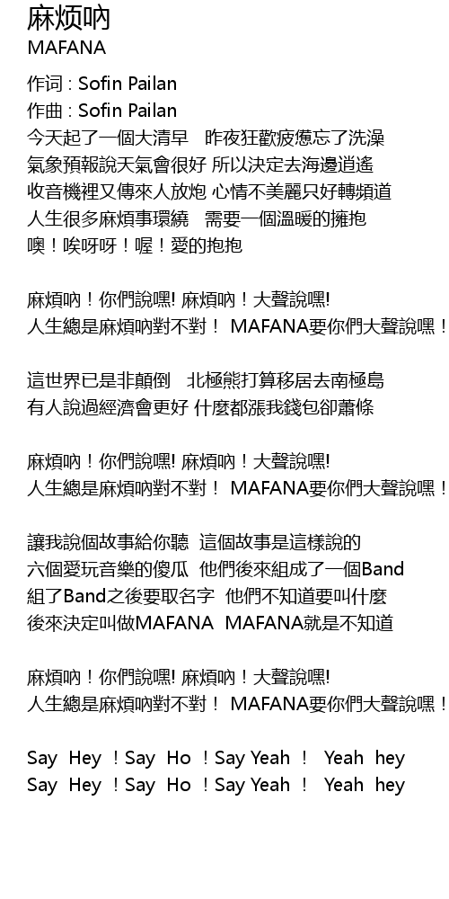 | 人生總是麻煩吶對不對! MAFANA要你們大聲說嘿! | |