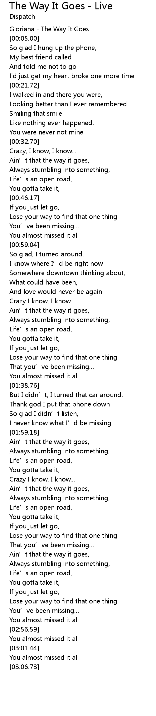 | [01:47.47] | But I didn' t, I turned that car around, |