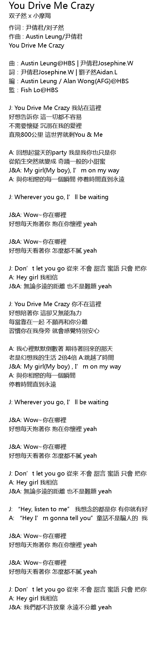 | J: You Drive Me Crazy wo zhan zai zhe li | |