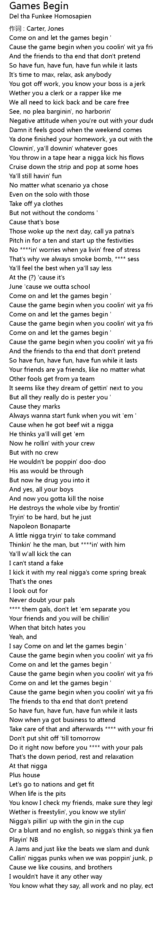 | Cause the game begin when you coolin' wit ya friends | |
