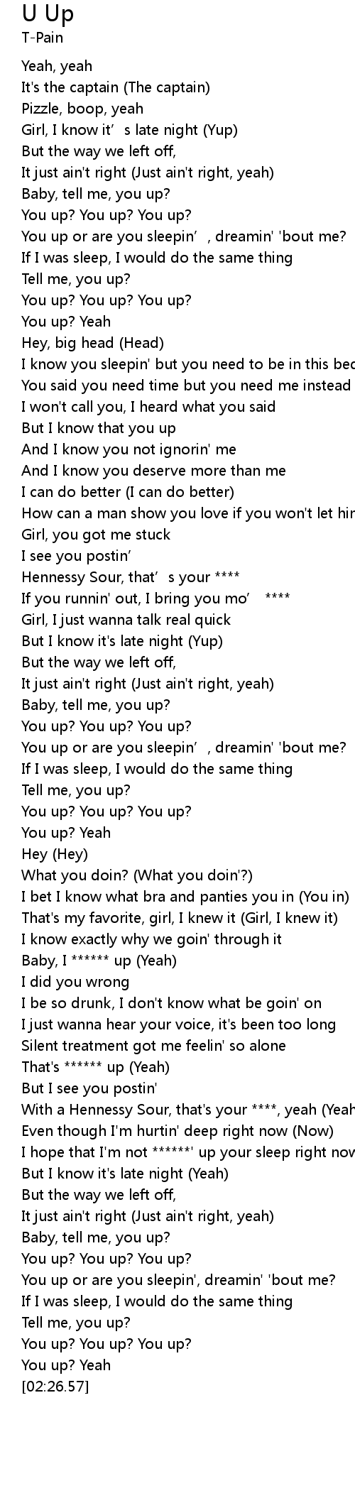| [02:09.46] | You up? You up? You up? |