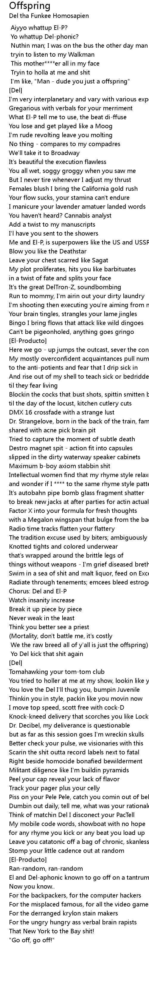 I'm like, "Man - dude you just a offspring" |
