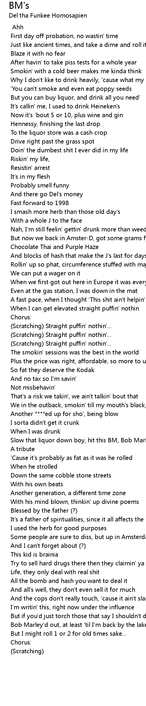 Slow that liquor down boy, hit this BM, Bob Marley |