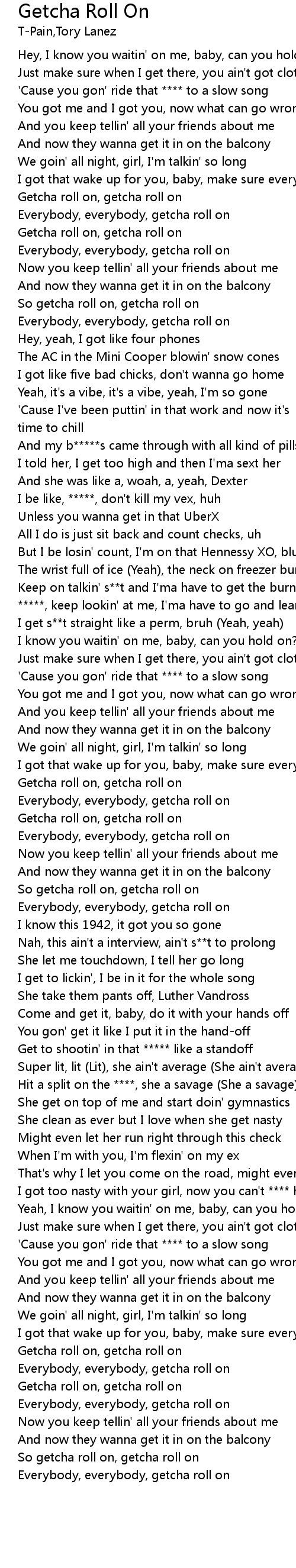 | [01:29.52] | *****, keep lookin' at me, I'ma have to go and learn ya |