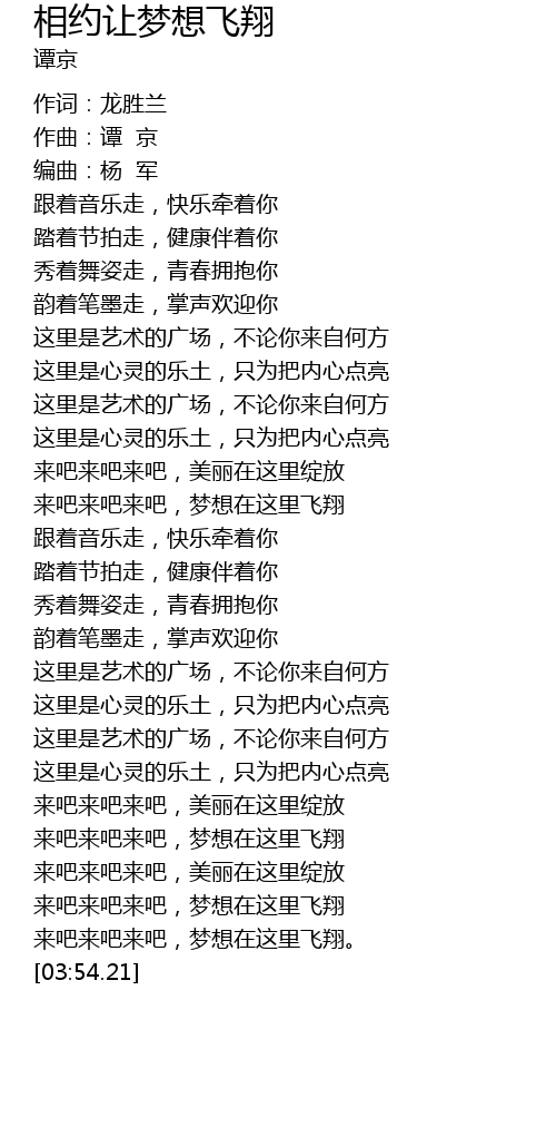 | [03:29.51] | 来吧来吧来吧,梦想在这里飞翔 |