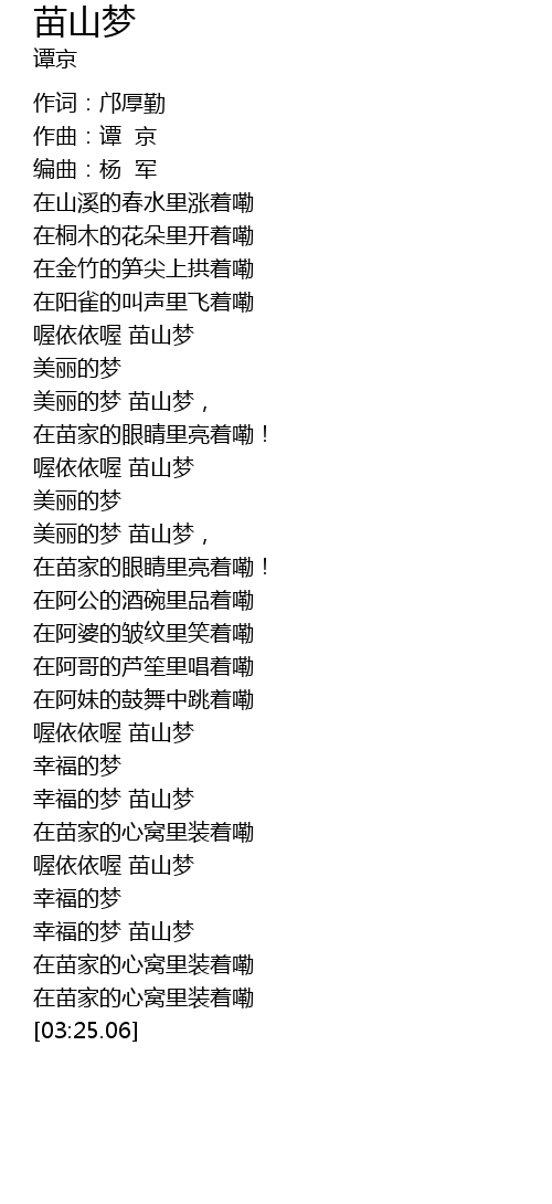 | [02:50.51] | 喔依依喔 苗山梦 |