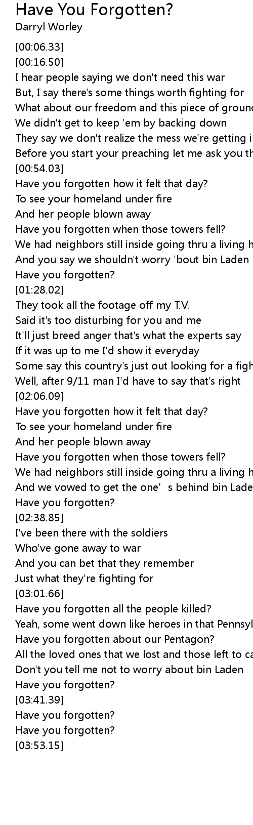 | [01:06.14] | Have you forgotten when those towers fell? |