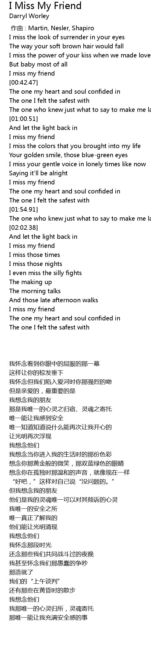 | [00:15.09] | I miss the look of surrender in your eyes |
