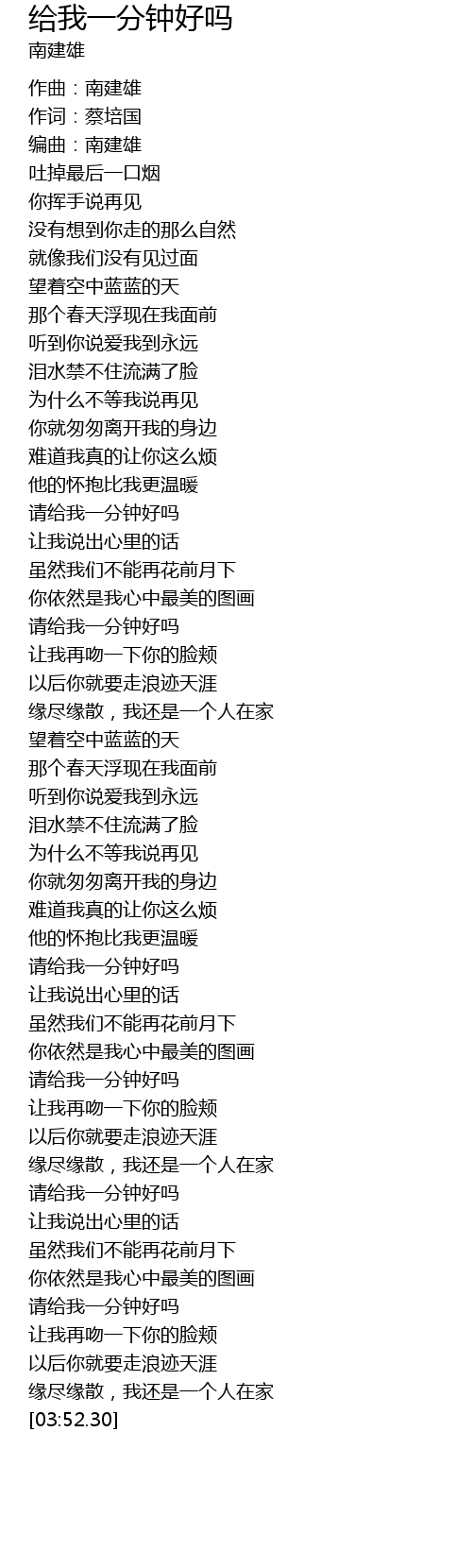 | [02:52.24] | qing gei wo yi fen zhong hao ma |