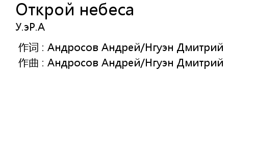 | [00:00.000] | 作词 : Андросов Андрей/Нгуэн Дмитрий |