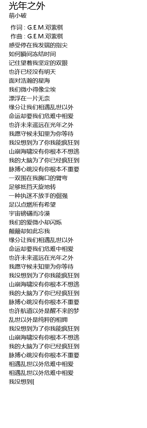| [00:00.000] | 作词 : G.E.M.邓紫棋 |