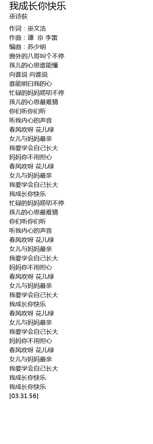 | [03:22.96] | wǒ chéng zhǎng nǐ kuài lè |