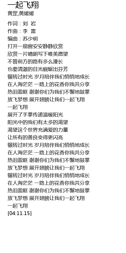 | [03:51.61] | 放飞梦想 展开翅膀让我们一起飞翔 |
