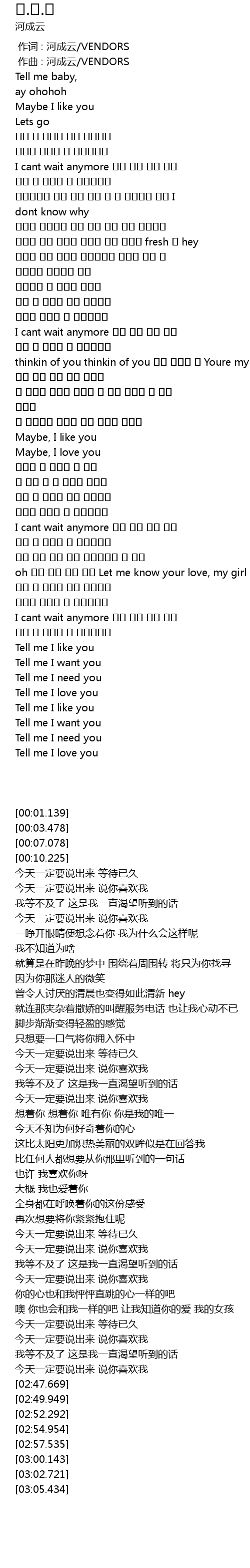 | [02:36.665] | I cant wait anymore 듣고 싶은 말이 있어 |