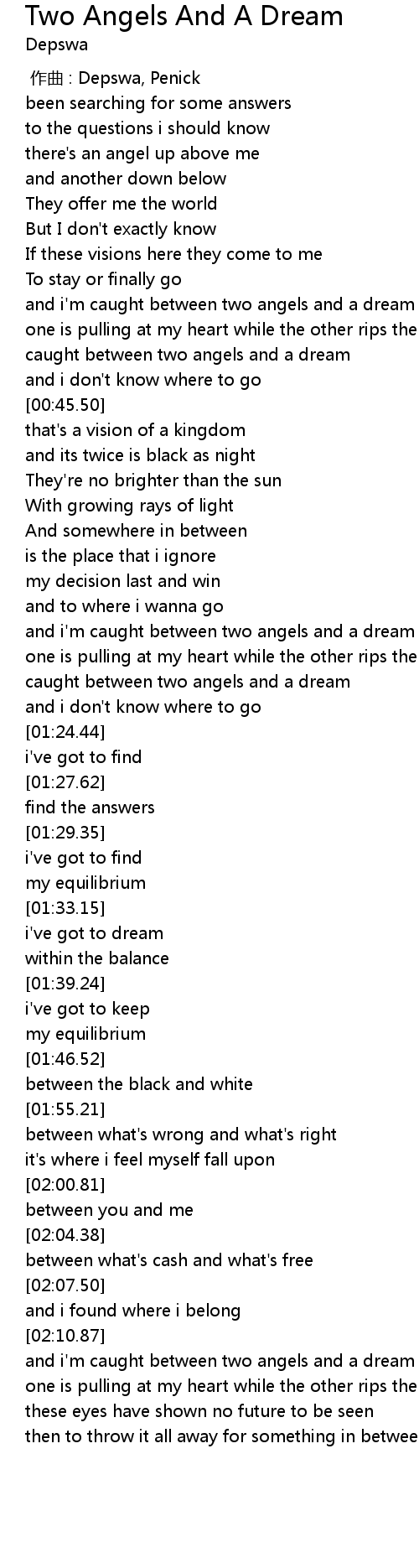| [02:13.04] | and i'm caught between two angels and a dream |