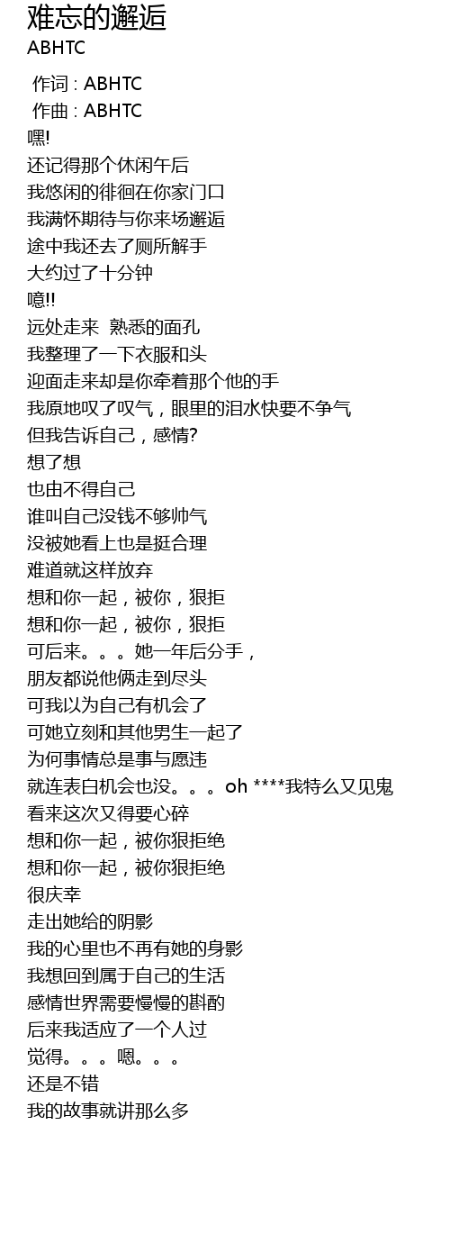 | [01:48.889] | 就连表白机会也没。。。oh ****我特么又见鬼 |