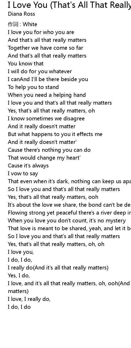 | I love, and it' s all that really matters, oh, ooh And it' s all that really matters | |
